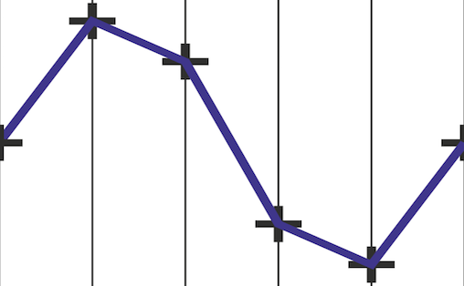 Bitdybde er det også vanlig å høre om. Den er vanligvis på 16 eller 24, men hva betyr det egentlig? Vi kan se på en sinusbølge som er samplet seks ganger per sekund igjen: