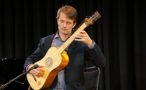 Gitarist Runar Kjeldsberg er i gang å spele i det han entrar Forstanderskapssalen. Den kviskrande, mjuke klangen frå barokkgitaren omfamnar oss før vi oppdagar han. “Canarios” av Gaspar Sanz. Kjeldsberg introduserer både instrumentet og songane – «om du høyrer etter, så høyrer du kanskje at…» og «denne har ein litt annan klang enn…». Han gir oss nokre siktepunkt i lyttinga. Slikt kan vere lurt for nye lyttarar, ikkje berre for barn i ein pedagogisk samanheng.