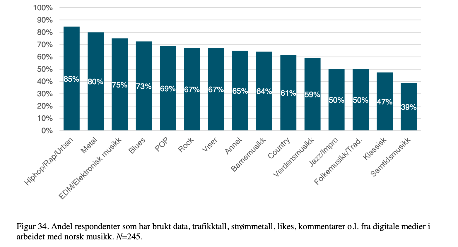 Hvordan bruker norske musikkaktører data fra plattformene og strømmekanalene? Figur fra rapporten (Foto: )