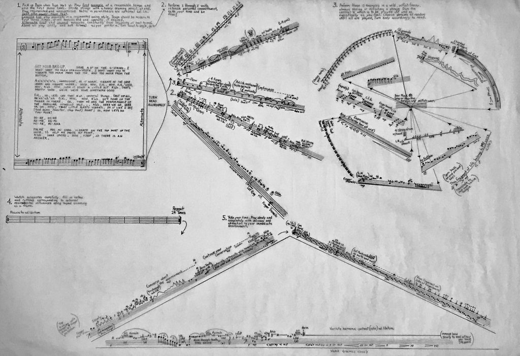 IKKE AKKURAT RETT FRAM: Hal Clarks Bass Dance, skrevet for framføring på HOK i Bærum, med danser. I tillegg til merknader for det lydlige, foreslår det også bevegelser for danseren. (Foto: )