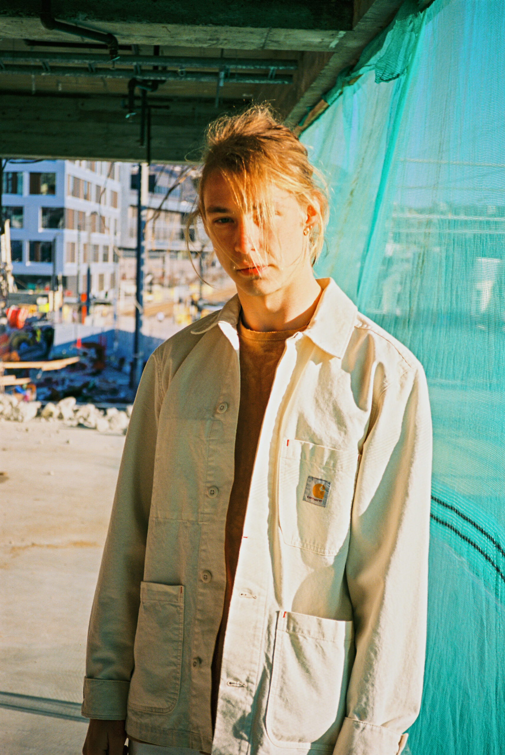 Han sitter i en jordbrun sofa i leiligheten sin i Bergen. Bak ham henger et teppe med print av gule sjiraffer. Her har han tilbrakt mesteparten av det siste koronaåret, og brukt tiden på å produsere sitt første album, Also This Will Change, som ble sluppet i november 2020.