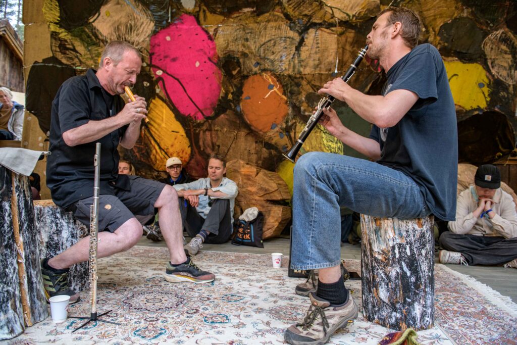 Festivalsjef Andreas Røysum (t.v.) i levande spel med Mats Gustafsson, her med lita fløyte. (Foto: Dawid Laskowski)