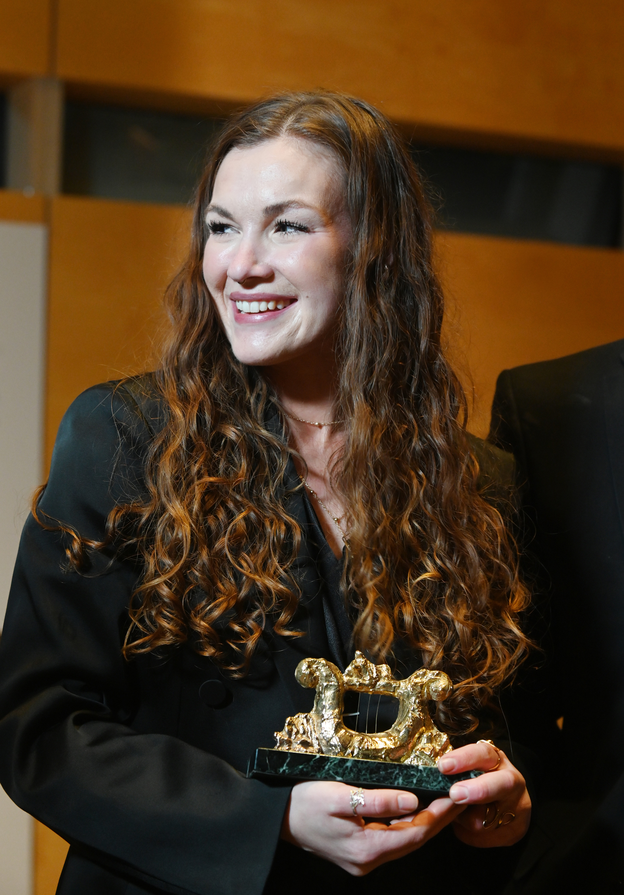 Andréa Louise Horstad mottok Harpa 2025 på vegne av Makta komponistlag (Foto: Thomas Kolbein Bjørk Olsen, Berlinkontoret)