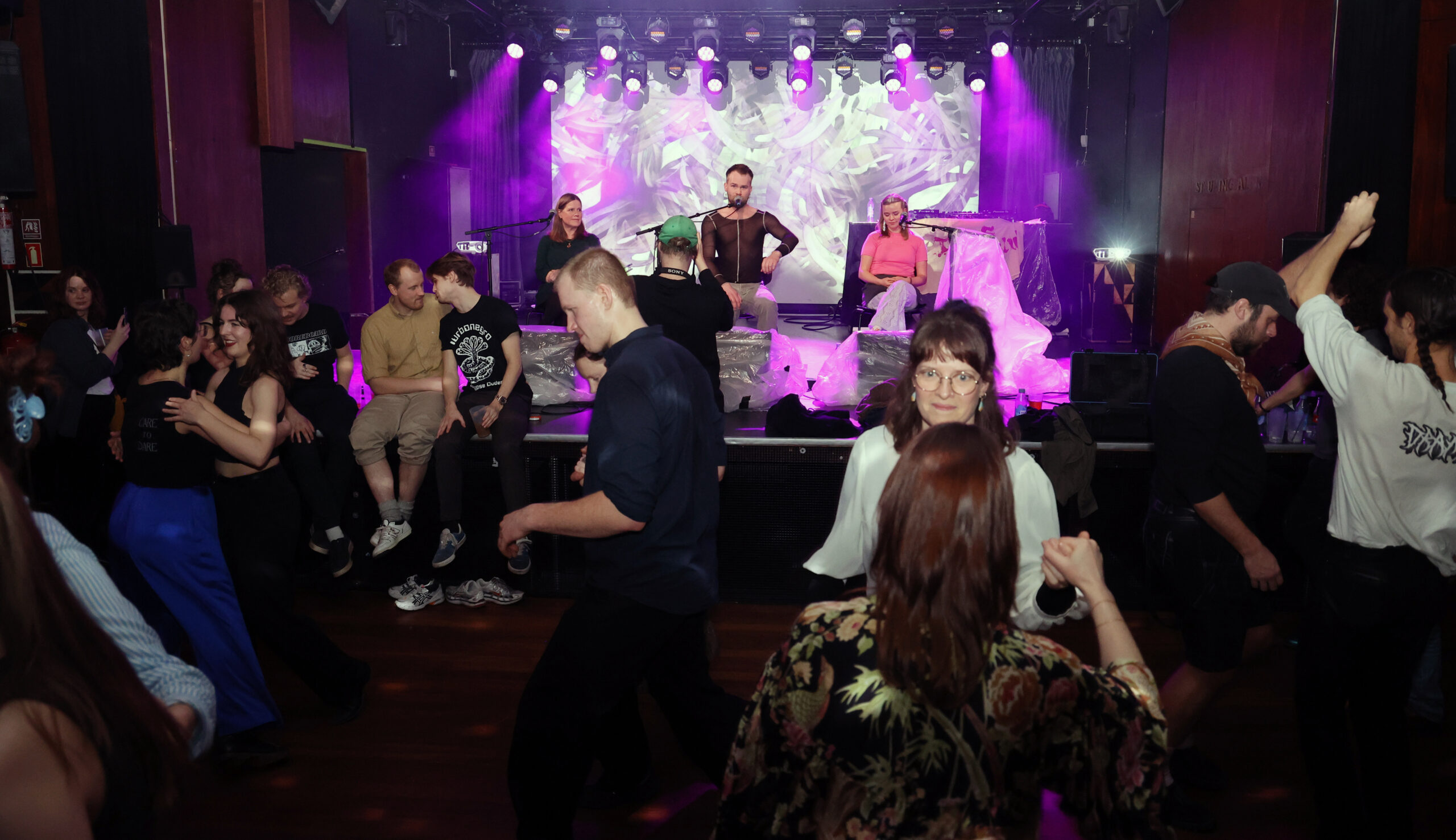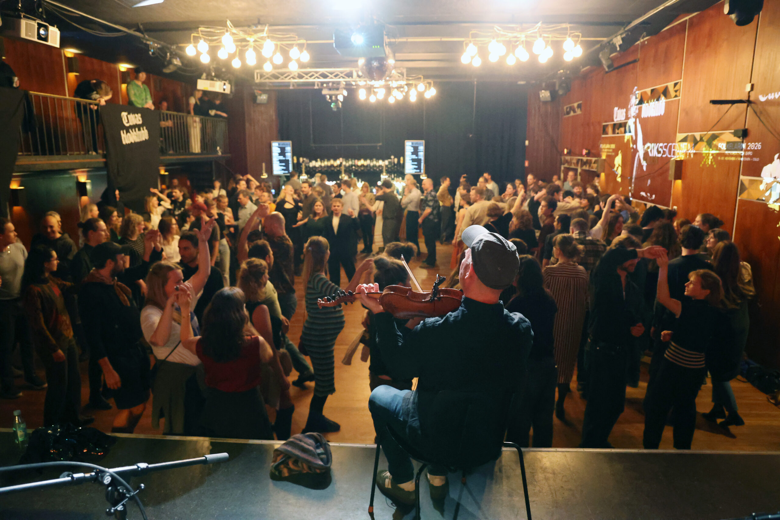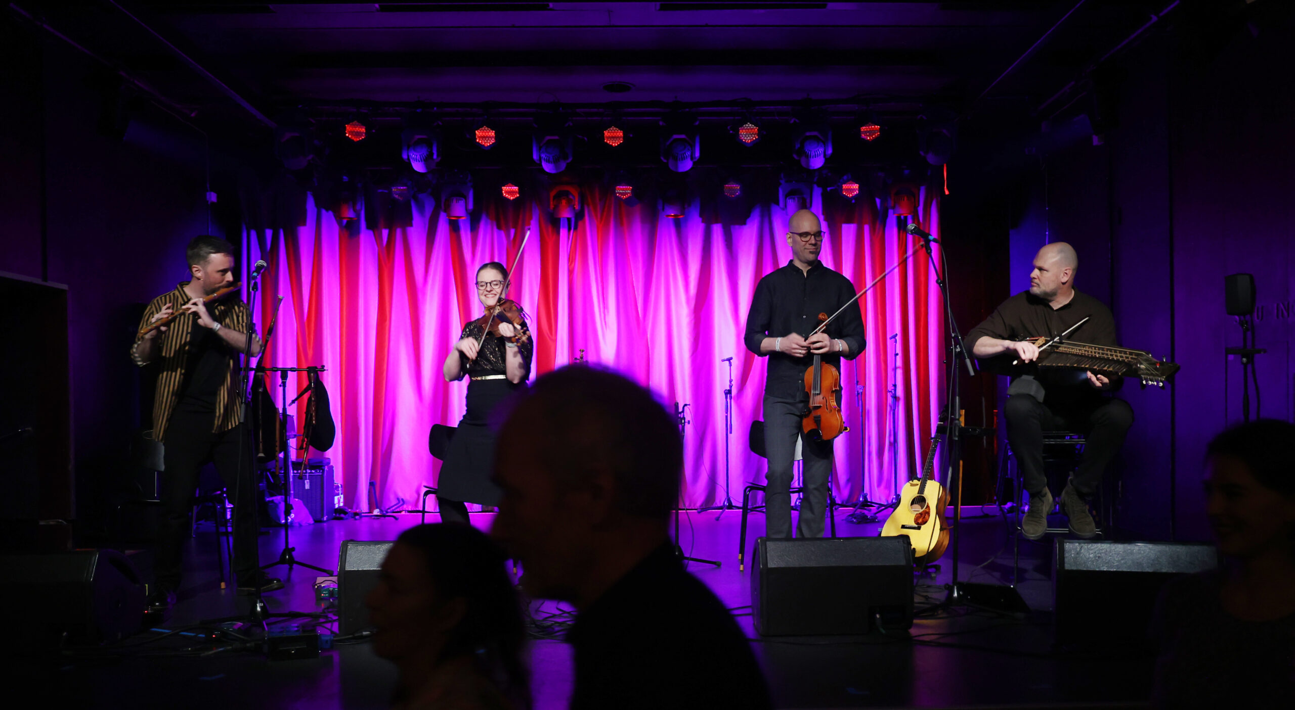 Tanken bak å invitere Tuvas Blodklubb til København var å opne opp for eit format der folkemusikken kan bevege seg fritt mellom konsert, scene og klubb, fortel Ale Carr: – Blodklubben repræsenterer en generøs og inkluderende tilgang til traditionsmusikken, hvor tærsklen for deltagelse er lav og energien høj. Det harmonerer godt med vores ønske om at vise, hvordan folkemusik både kan være dybt forankret og samtidig meget nutidig. (Foto: Knut Utler)