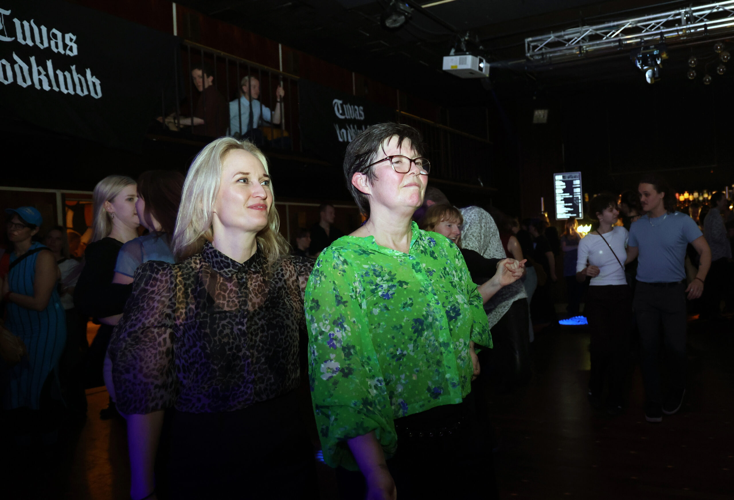 Initiativtakarane til heile greia, Tuva Syvertsen og Lene Furuli, feiga ikkje unna dansegolvet. (Foto: Knut Utler)