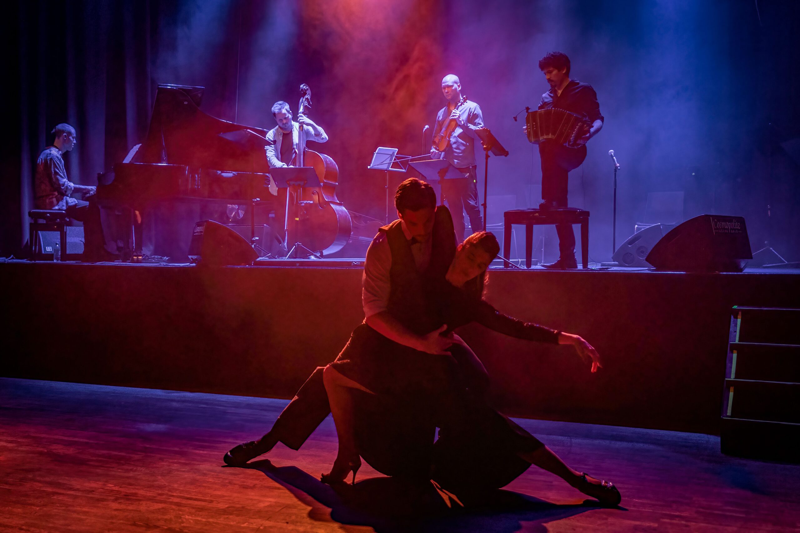 Artistene går på scenen presist kl 20:00, og konserten starter med piano, kontrabass, fiolin, bandoneon, to dansere, fullt lysshow og masse energi. «Ja vel? Vi starter med finalen?!», var min første tanke.