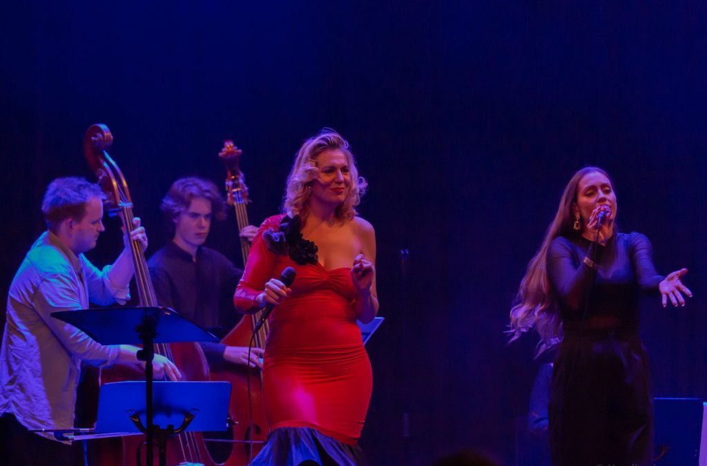 På vokal: Tora Augestad (i midten) og Ingrid Jasmin Vogt (til høyre). (Foto: Karine Leon)