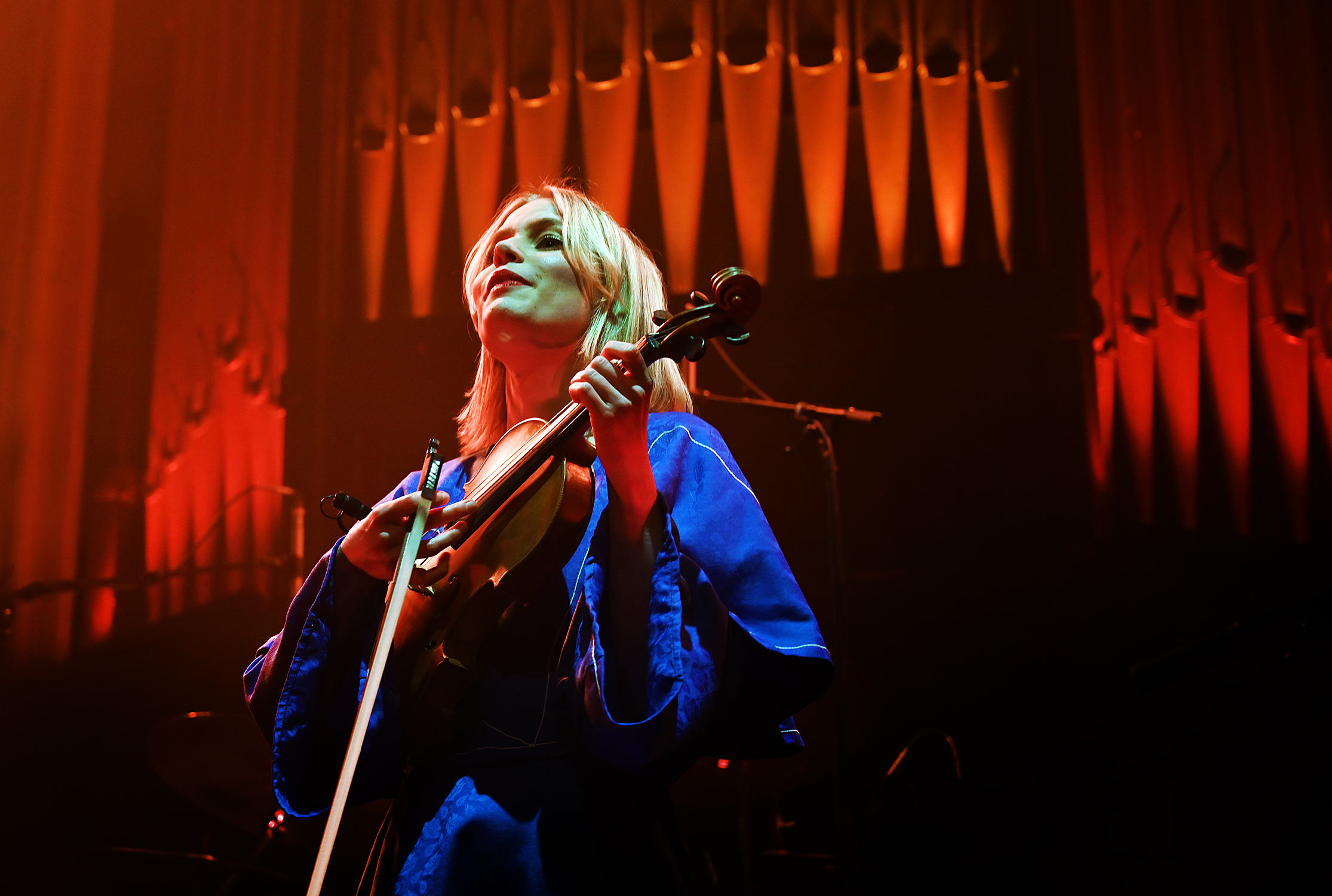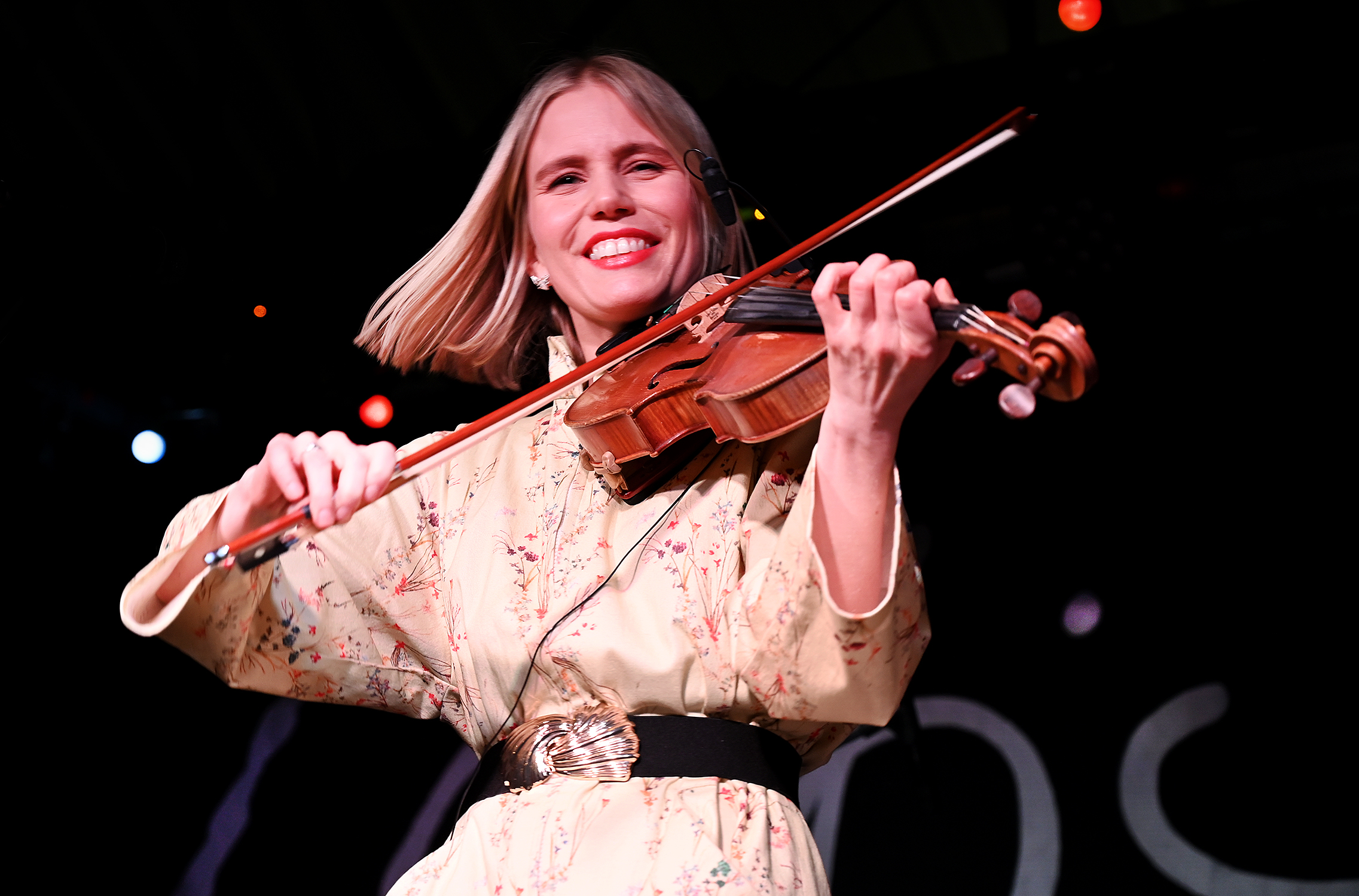 TIL USA FOR FØRSTE GANG: Julie Alapnes på Celtic Connections-konserten i Saint Luke’s i Glasgow sist lørdag. Hun og bandet er valgt ut blant tusenvis av søkere til å spille på Folk Alliance International i Kansas City i februar. (Foto: Thomas Kolbein Bjørk Olsen, Berlinkontoret)
