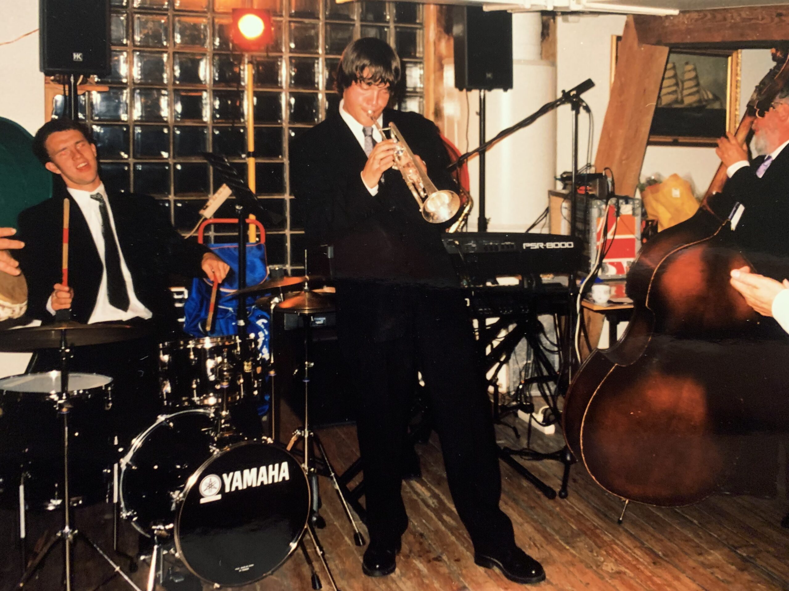 Gard Nilssen, trompetist Thomas Johansson og «onkel Svein-Erik» på kontrabass. (Foto: Privat)
