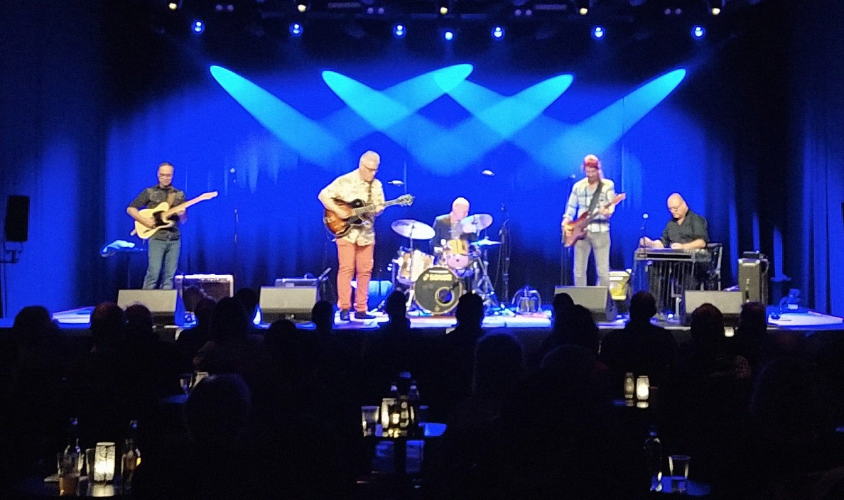 Best Western Swing spilte i Ibsenhuset i Skien denne Halloween-kvelden, rett etter duoen Lars Jakob Rudjord (piano) og Johanne Flottorp (hardingfele). Best Western Swing er fra venstre: Finn Guttormsen (bass), Jarle Vespestad (trommer), Stian Carstensen (steelgitar, trekkspill), Asle Røe (gitar), Staffan William-Olsson (gitar). (Foto: Pressefoto)