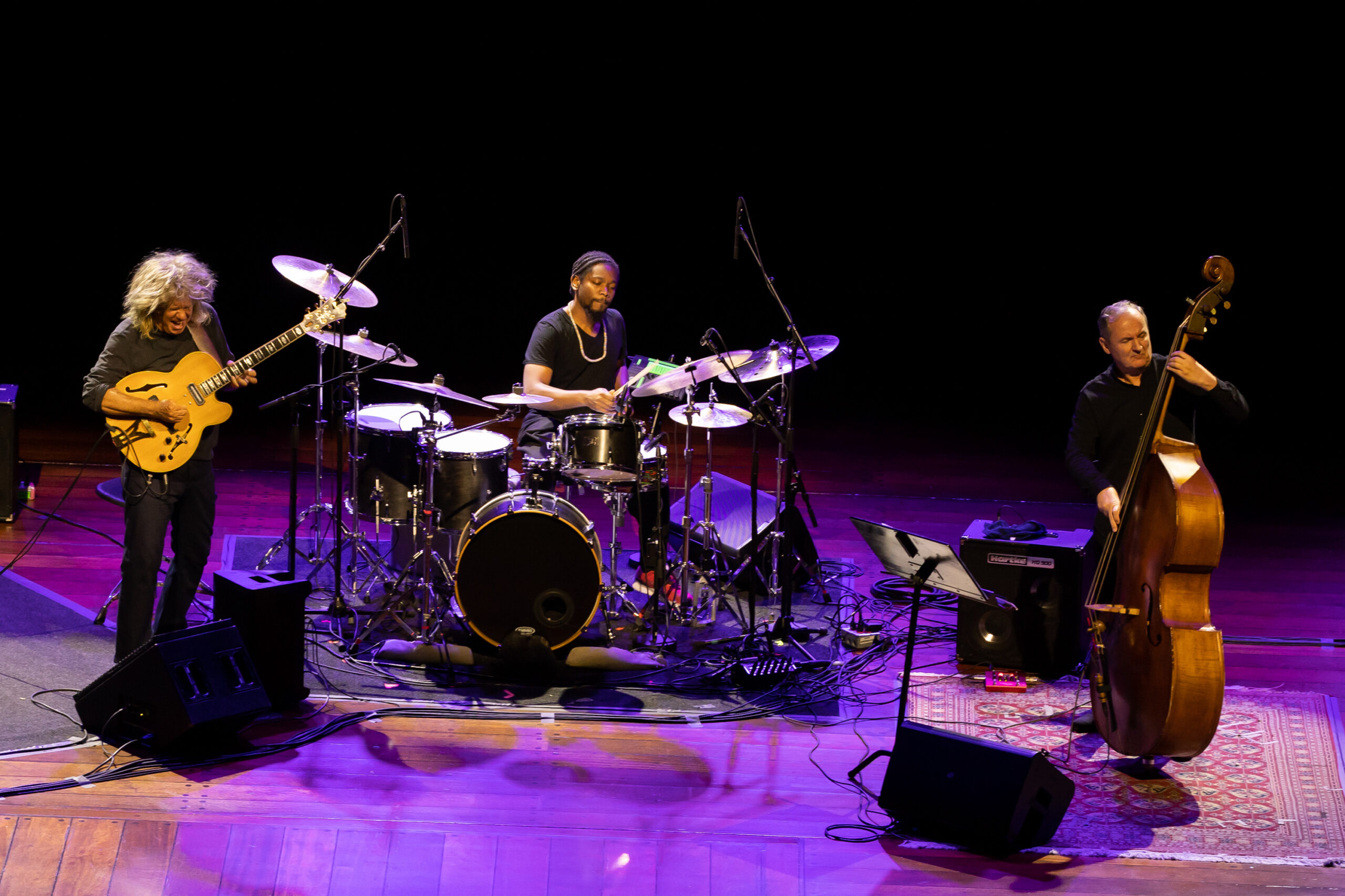 KONSERTSCENER OG STJERNER: Pat Metheny Trio i Oslo Konserthus. Skulle eg kanskje heller ynskje meg Metheny solo eller duo i Konserthuset, eventuelt trioen på ei heilt anna scene? spør Ballades kritikar. (Foto: Matija Puzar/Oslo Jazzfestival)