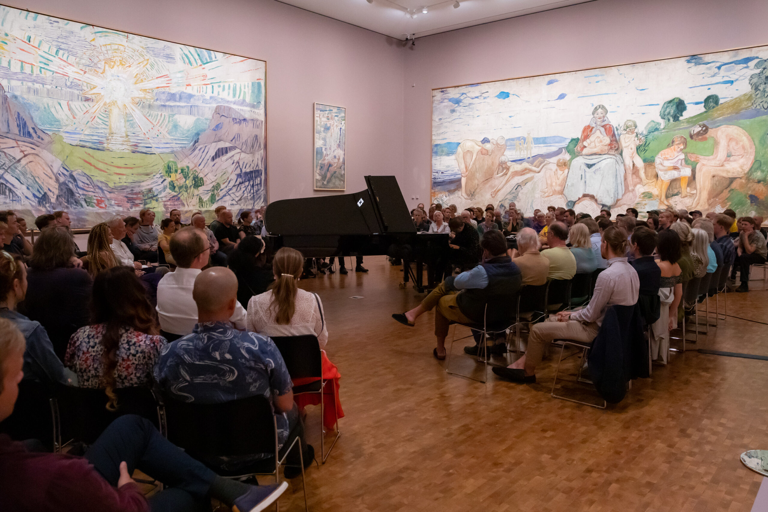 Under dei mest klangutforskande delane av konserten havna eg i ein tilstand mellom søvn og vaken, ein rus. Moran tok oss med langt inn i dei djupaste tonane i flygelet, og vi vart slukt av ein kvit støy som Moran klarte å mane fram i tangentane. Ut av mørkeret kom vi inn i hans komposisjon Follow the Light. Som han sa etterpå: “It’s right behind you” – og peika på Munchs Solen.