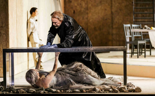 Hege Høisæter som Erda og Anders Lorentzson som Wotan i «Rhenguldet» på GöteborgsOperan. Regi Stephen Langridge (Foto: Mats Bäcker)