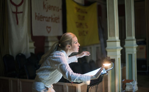Samtidig er hennes ensidige fokus på gamle, religiøse tekster, og hennes unyanserte tilnærming til problematikken, en av hovedårsakene til at hun kanskje ikke treffer et sekularisert, opplyst og, jeg vil anta, allerede engasjert publikum i Logen teater i Bergen i 2015. Det er neppe forkynnende tekster fra tidenes morgen, nærmest bokstavelig talt, som trigger engasjementet i denne forsamlingen aller mest.