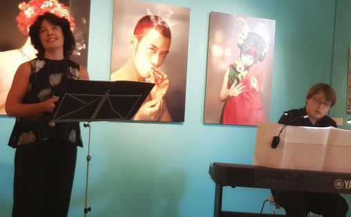Astrid Kvalbein og Joachim Kwetzinsky gjør konsertkåseri om Pauline Hall på Historisk Museum (Foto: Aslaug Olette Klausen)
