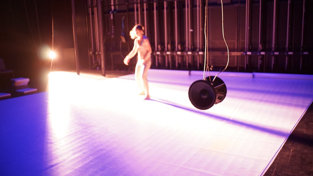 Frå førestillinga Her, om forholdet mellom kropp og hugs, laga av dansar Silje Aker Johnsen og komponist Erik Dæhlin (Foto: Chris Erlbeck)