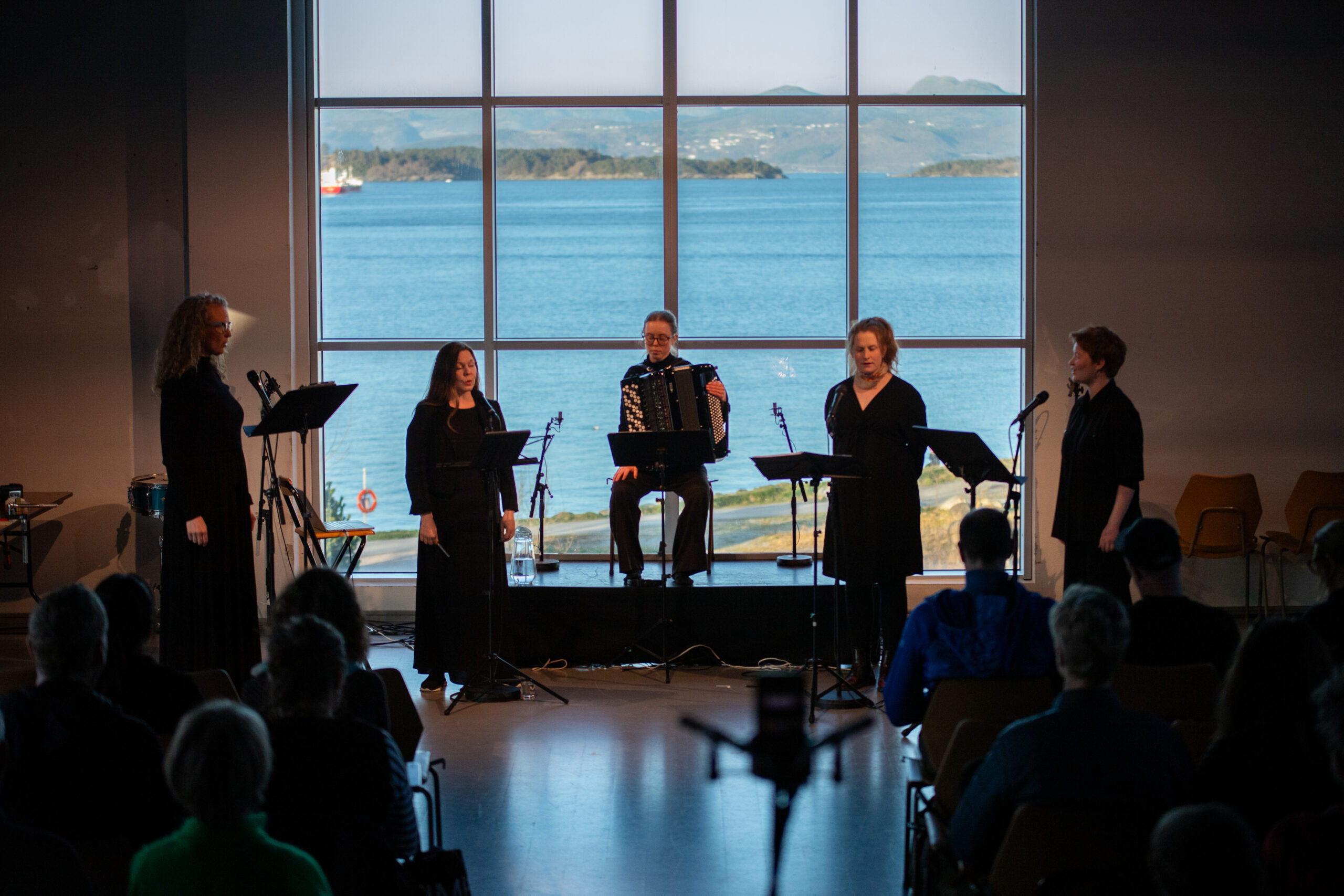 Et kort ord om Scene 1 på Tou før jeg går videre: Gjennom det store vinduet som Song Cirkus og Nyland Johansen er stilt opp foran skuer vi utover Gandsfjorden og innover fjellene i Ryfylke, et skikkelig nasjonalromantisk bakteppe, får en si.