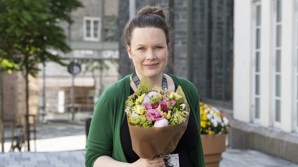 Hilde Halvorsrød, her ved mottakelsen av prisen for Årets kritikk under Festspillene i Bergen i mai 2021. Prisen er et samarbeid mellom Norsk kritikerlag, Festspillene i Bergen og Norsk teater- og orkesterforening, og Halvorsrød fikk den for teksten «Om å brøle for NRKs døve ører», først publisert på Scenekunst.no. (Foto: Thor Brødreskift)