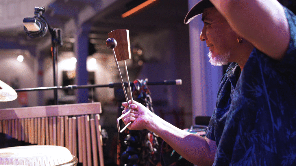 Perkusjonist Ricardo Sanchez (Foto: Stillbilde fra videoen/ Karstein Grønnesby)
