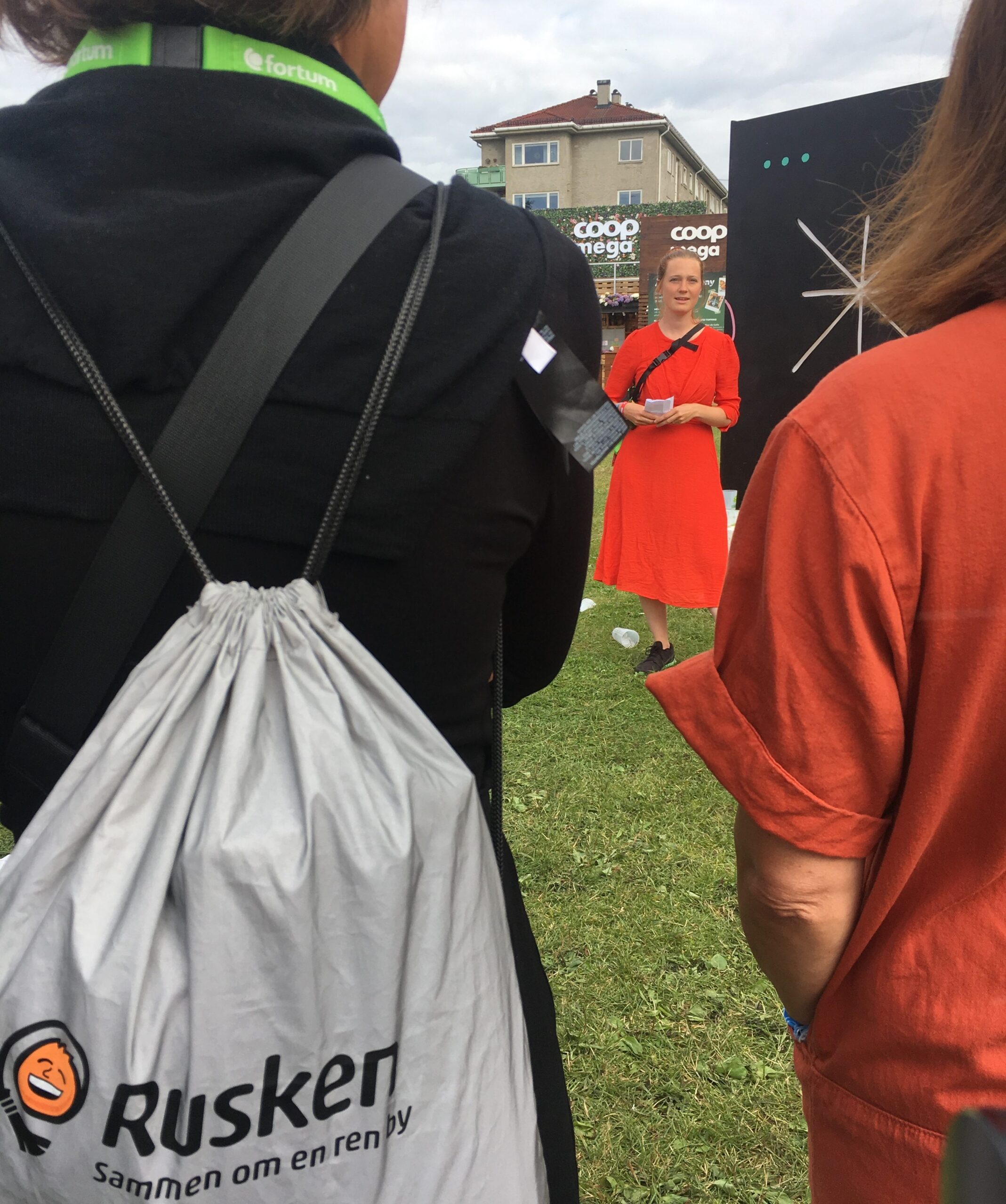 Ingrid Kleiva Møller, miljøsjef i Øya, foran seminardeltakere på klimakuttomvisning. Foto: Siri Narverud Moen (Foto: )