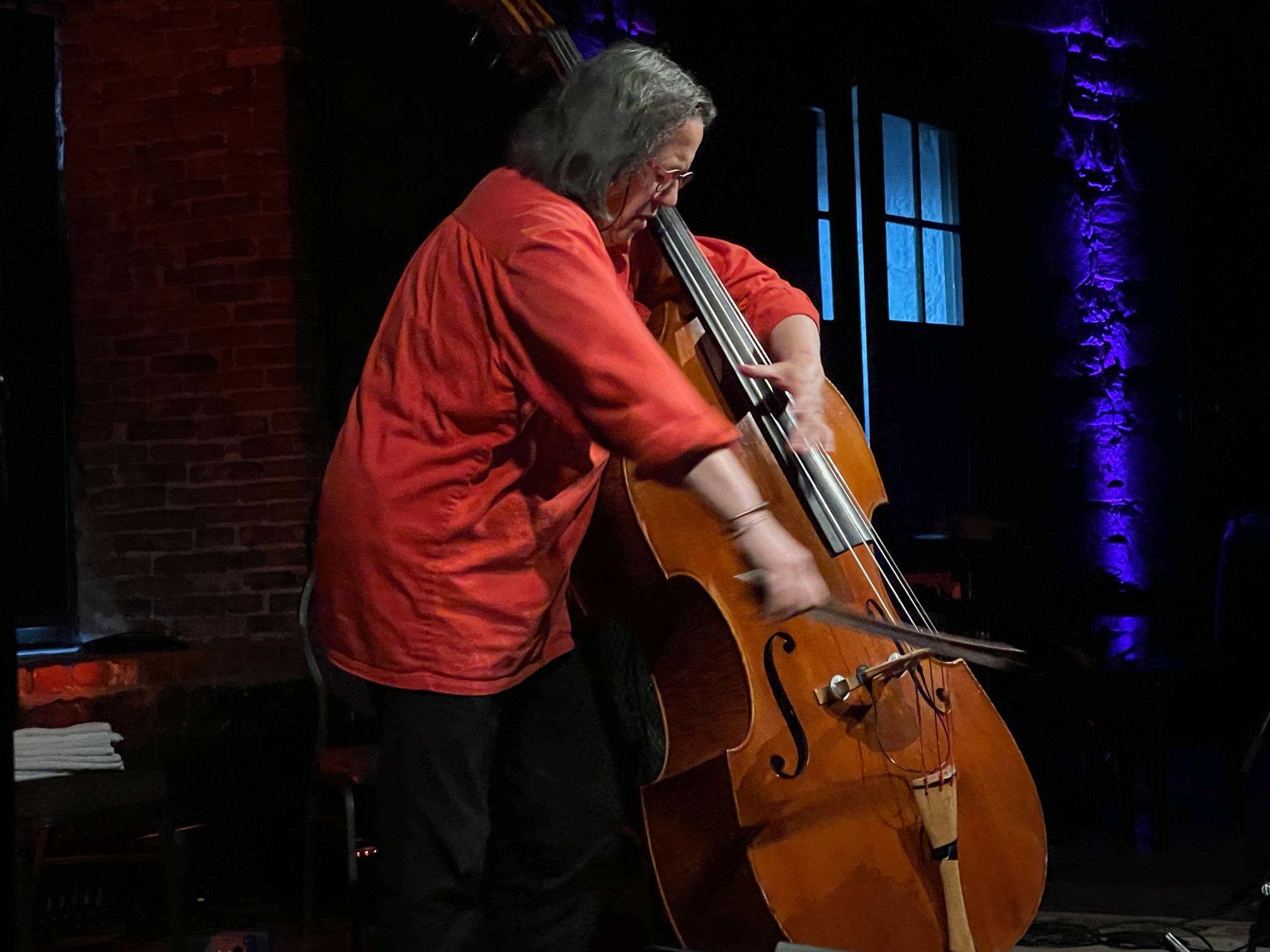 Den franske cellisten Joëlle Léandre var på Kongsbergjazz’ «Særingfest»-program, men har et trøkk og et uttrykk som spenner bein på alle særinger. (Foto: Guro Kleveland / Ballade)