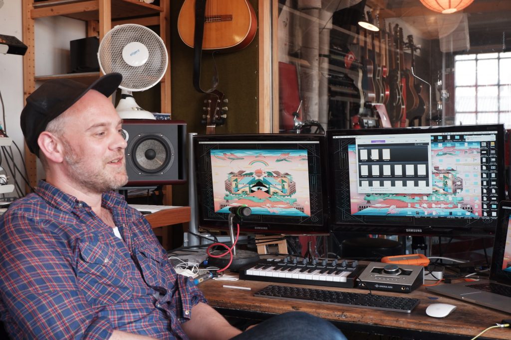 Ved siden av meg står en stor reol med alskens synther. I hjørnet står det flere blåseinstrumenter, og på bordet foran meg står det et flittig brukt askebeger. Vi sitter i slitne sofaer som er godt sittet i, med utsikt mot en stor pult med flere pc-skjermer. Til høyre for pulten står et tilhørende skap med utallige XLR-innganger, forsterkere og ukjente bokser – alt ligger til rette for å lage musikk.
