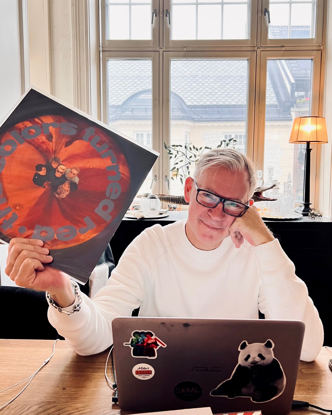 Kronikkforfatteren avbildet med det selvtitulerte debutalbumet til haugesundgruppa The Colors Turned Red fra 1988, en plate han skrev bok om i serien Norske Albumklassikere. (Foto: Privat)