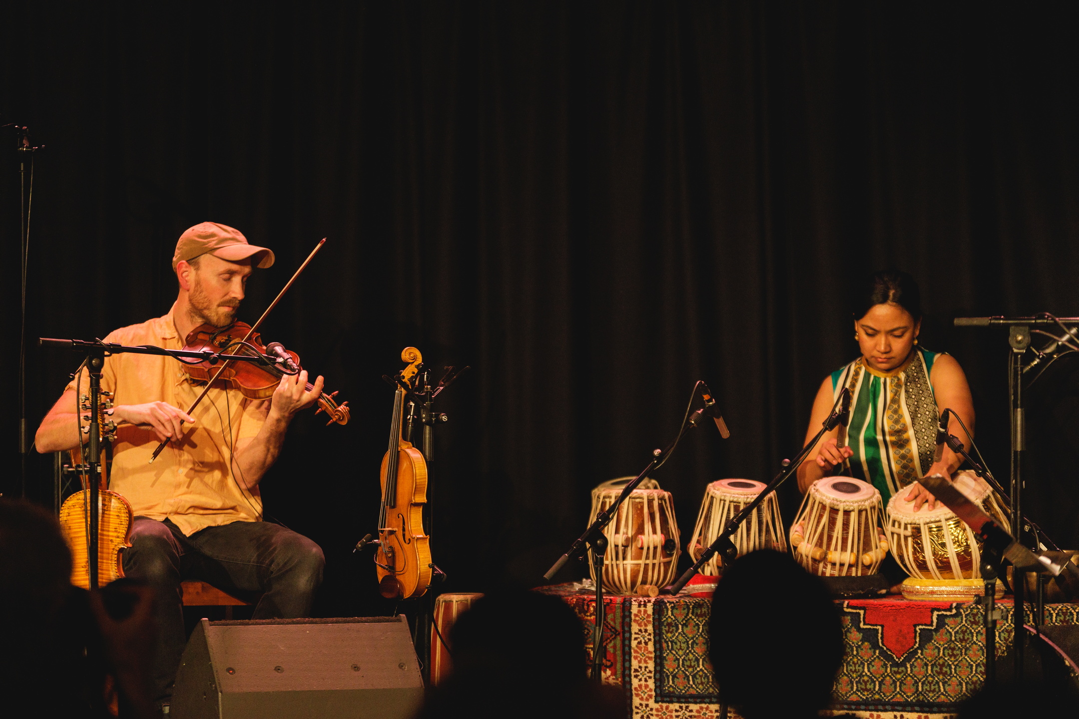 På Riksscenen er stoler, bord og lys nydelig dandert til for publikummet til Erlend Viken med band og nepalske Sanskriti Shrestha. En umiddelbar følelse av ro treffer meg når jeg kommer inn på intimscenen, og med god plass fremst mistenker jeg at jeg skal bevitne et magisk musikkmøte sammen med de rundt 100 fremmøtte i publikum. På scenen er feler og tabla-trommer linet opp, tablaene er løftet opp bakerst. Og for noen vakre instrumenter de er. Gullpyntet og mikket opp, klare for forestilling.