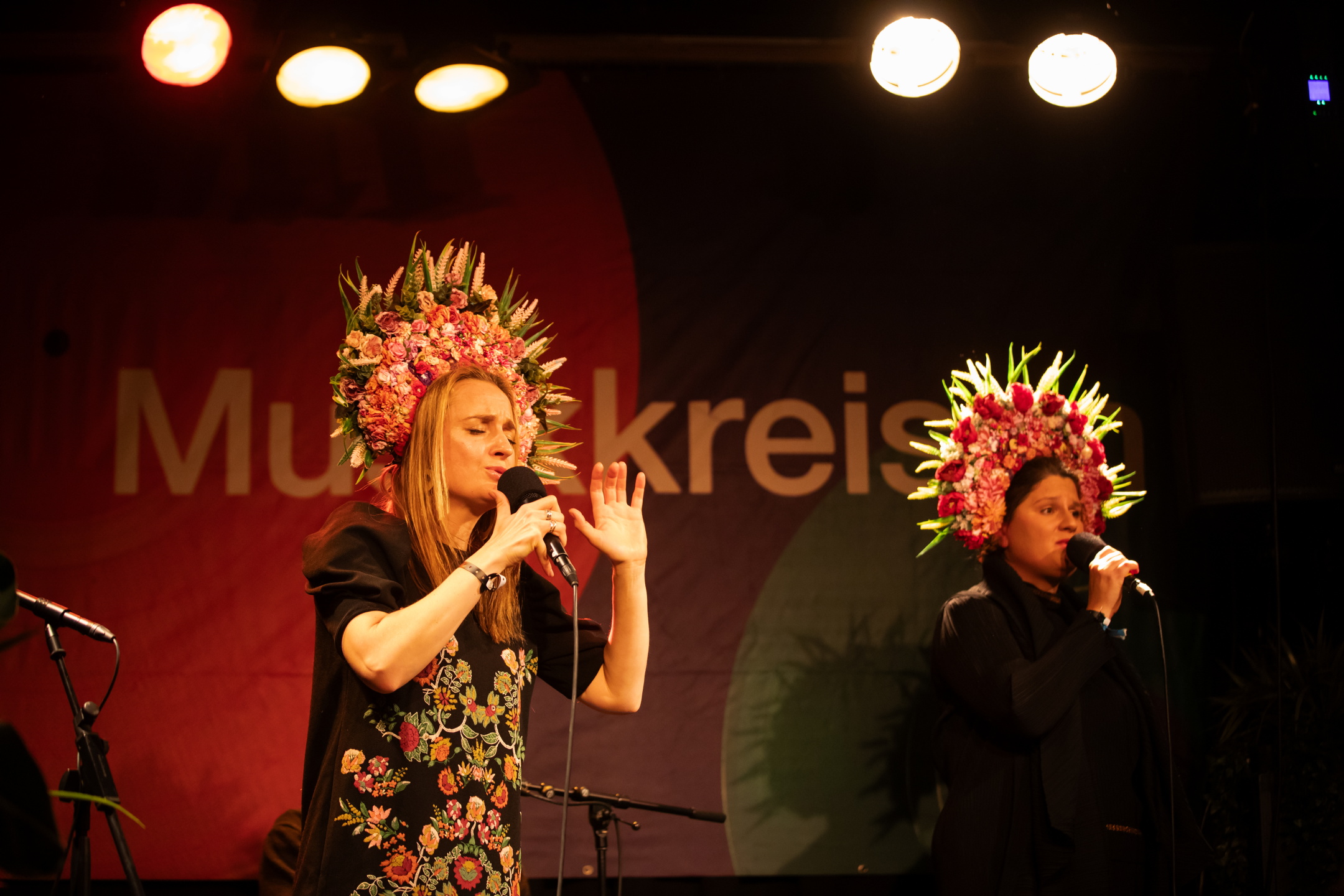 THE WISHING SONG: Polsk-ukrainske Dagadana under «Musikkreisen»s livesending på Internasjonalen, med fantastisk hodepryd. (Foto: Nabeeh Samaan)