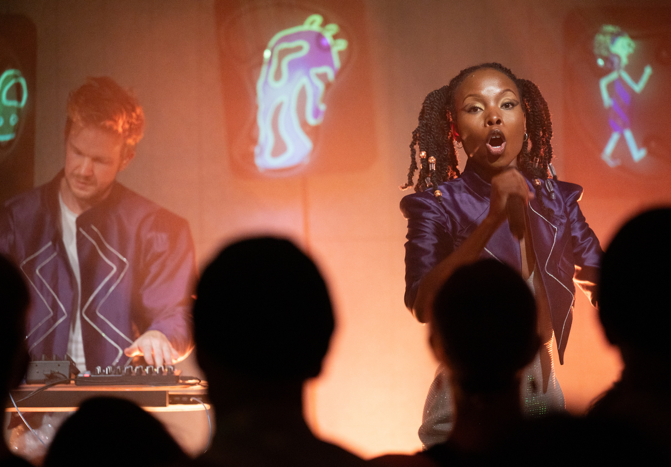 På konsertarenaen Dunk stiger duoen frem fra publikum, og de setter i gang en rytmisk og basstung “Watu”, med Bernt Isak på keyboard, samples og DJ-ing mens Labdi synger. Her kjenner jeg at jeg tidlig begynner å se etter fusjonen mellom det norske og kenyanske: det saturerte, elektroniske og raffinerte som møter det organiske, jordede og rå.