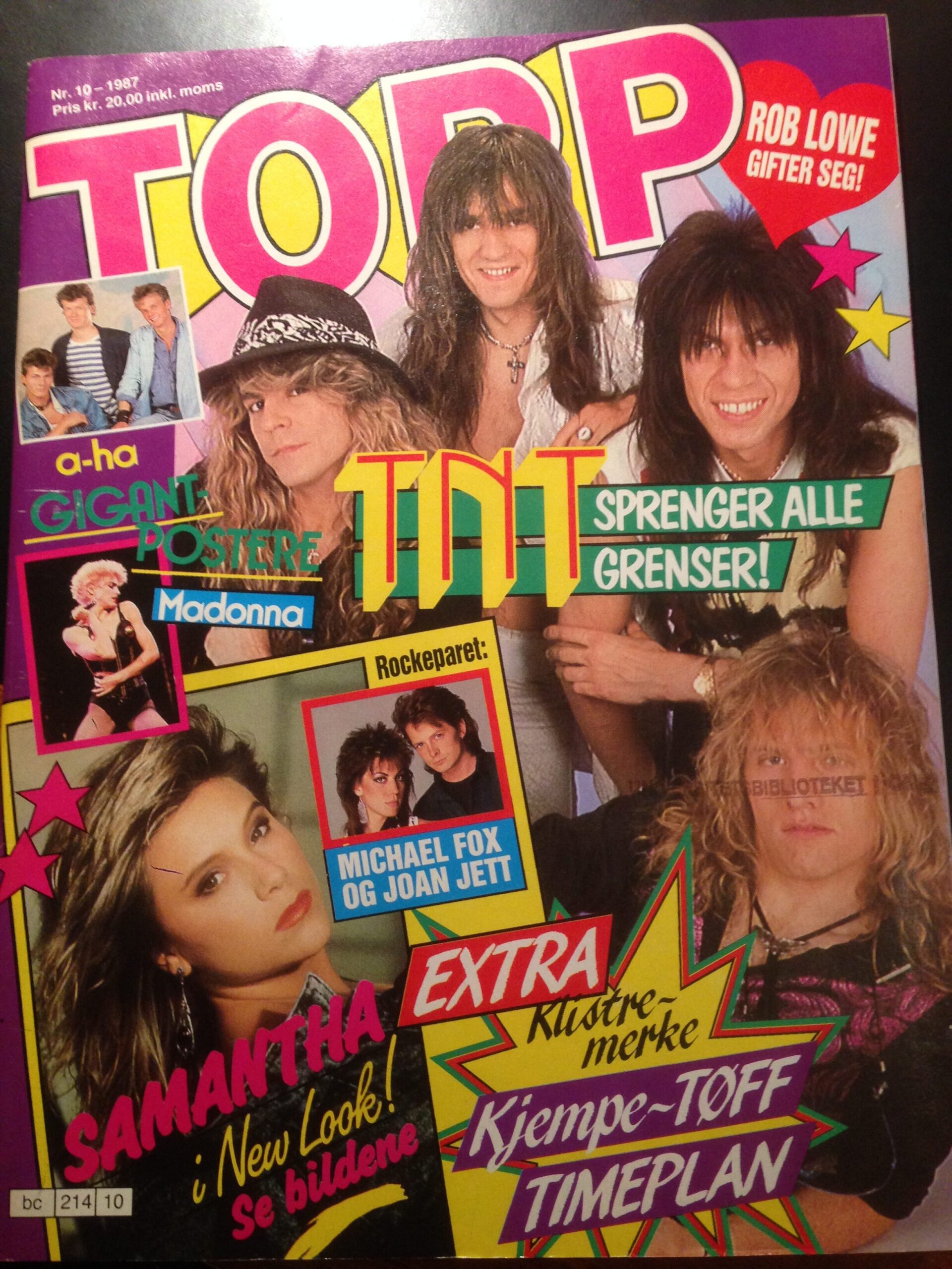 Topp tok pulsen på ungdomstida i 1987. TNT sprengte grenser, Samantha Fox hadde (nye) klær, slik kan du pimpe opp rommet ditt med plakater av aha og Madonna. (Foto: Tore Stavlund)