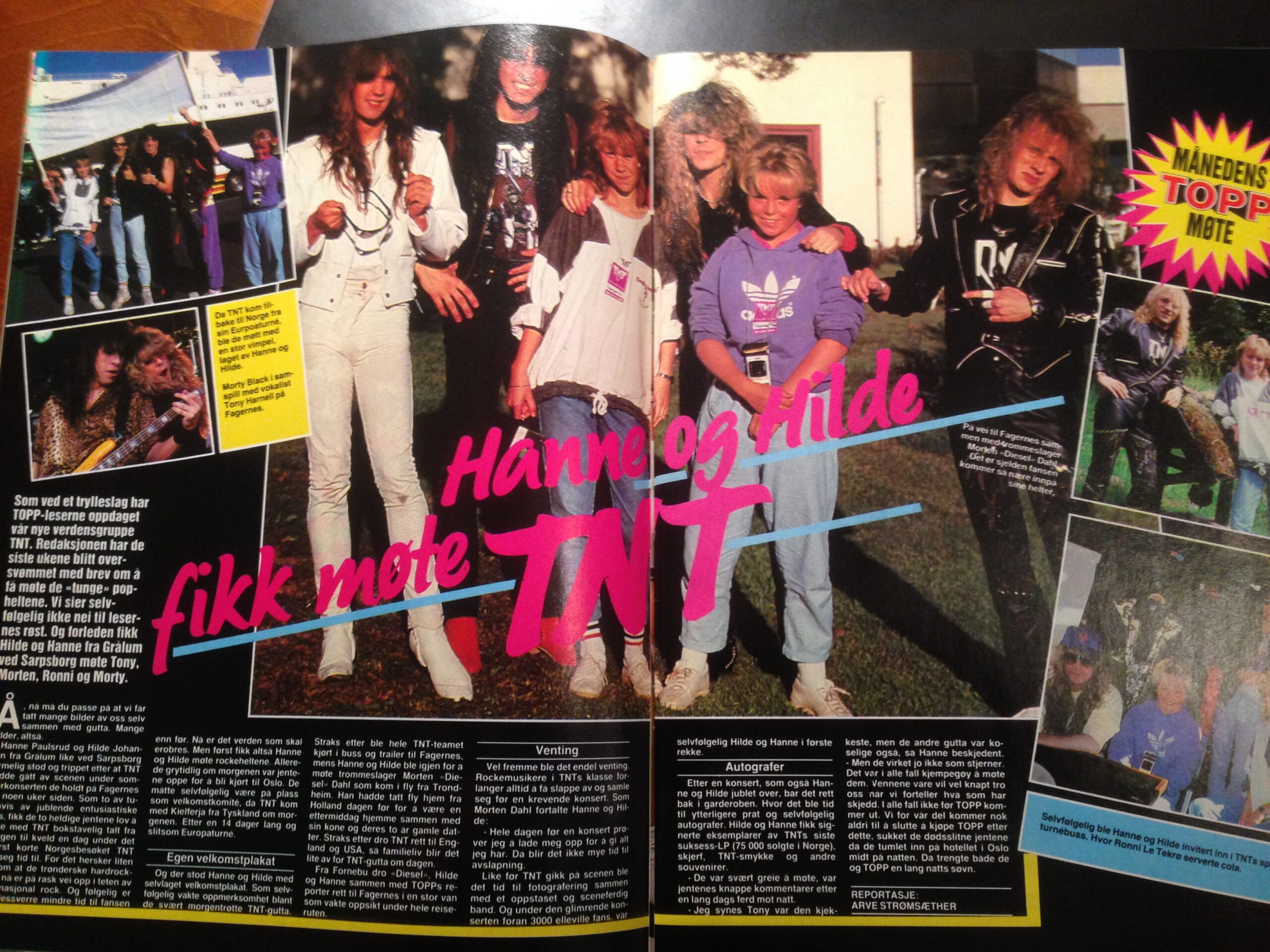 Faksimile fra musikk- og ungdomsbladet Topp i 1986. "Vi svikter ikke våre norske fans," sa TNT til bladet. De var da på vei til å make it big i USA. "Det er liksom alltid noe som ikke fungerer helt, som om det har hengt noe vagt ulykksalig ved dem helt fra starten, og akkurat det gjør meg litt trist. Ikke minst kjenner jeg på en spenning nå når bandet skal innta scenen på Den norske opera og ballett," skriver essayforfatter Tore Stavlund. TNT spiller i Operaen søndag 16. februar, og legger så ut på Norgesturné. (Foto: Tore Stavlund)