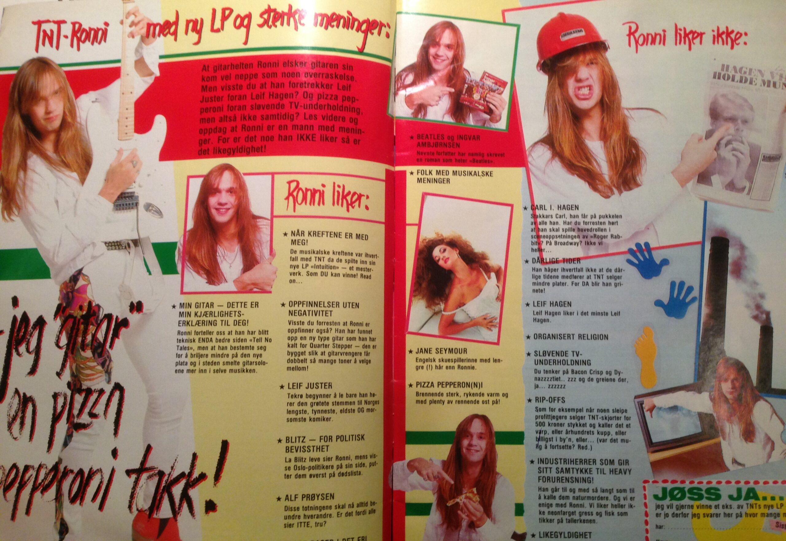 TNT-Ronni liker Leif Juster, pepporonipizza og Blitz, men liker ikke «sløvende TV-underholdning» og «industriherrer som gir sitt samtykke til heavy forurensning!» (Foto: Tore Stavlund)