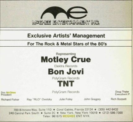 En annonse i magasinet til Billboard anno 1985 viste TNTs nye posisjon. Øverst i annonsen tronet bandnavnet til Mötley Crüe, under der Bon Jovi og nederst TNT. I dette øyeblikk sto de altså plassert sammen med to band som skulle bli blant Pop Metals aller mest suksessrike. Alle tre representert av McGhee Entertainment Inc, «For The Rock & Metal Stars of the 80’s».