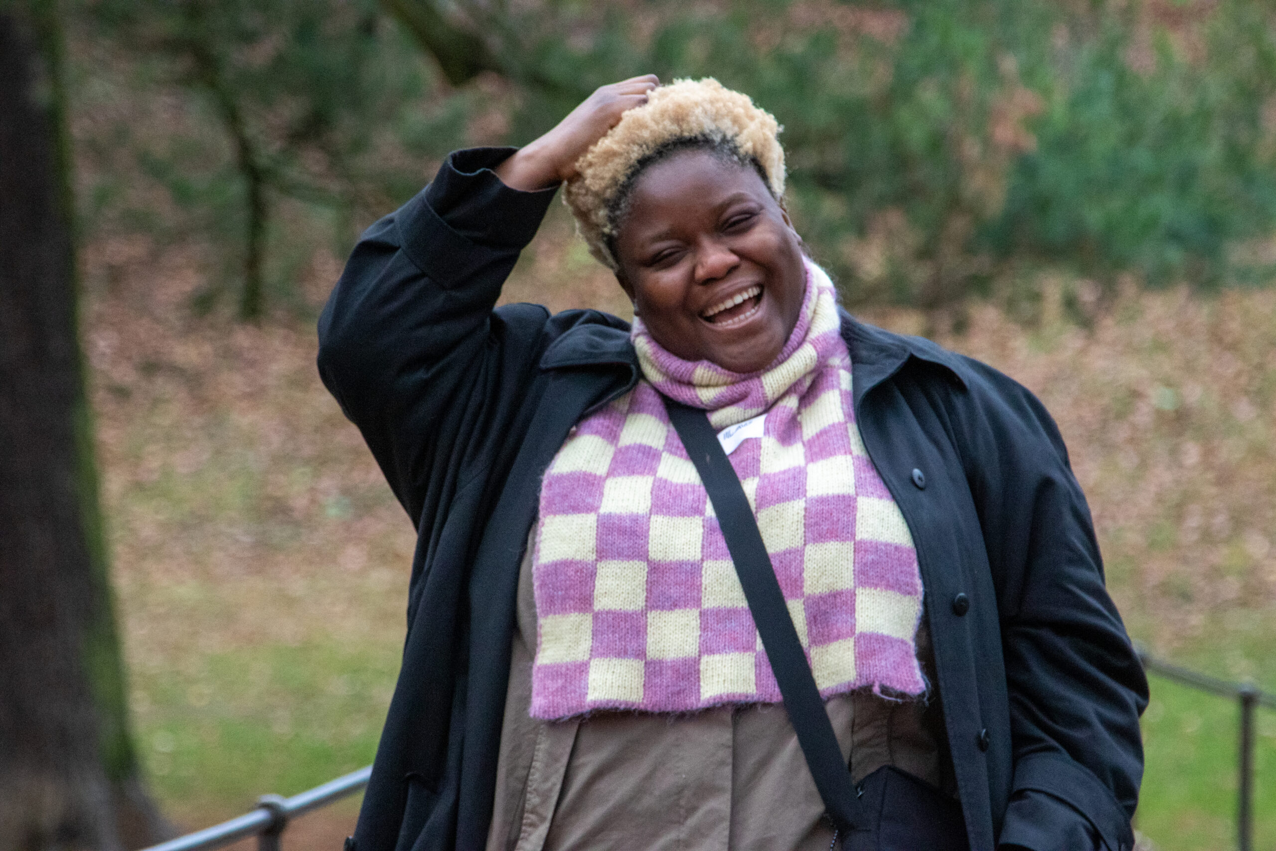 – Musikk er musikk, så for meg handler ikke inspirasjon om at det må tilhøre min egen sjanger, sier Kamara. Vesken avslører at hun nok har flere bergensinspirasjoner i livet. (Foto: Erik Valebrokk)