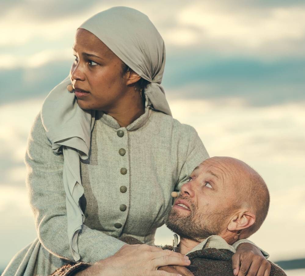 Peer finner solveien hjem til lys og kjærlighet. Her ser vi Aksel Hennie som Peer og Mimmi Tamba som Solveig i Peer Gynt på Gålå i august 2023. (Foto: Bård Gundersen)