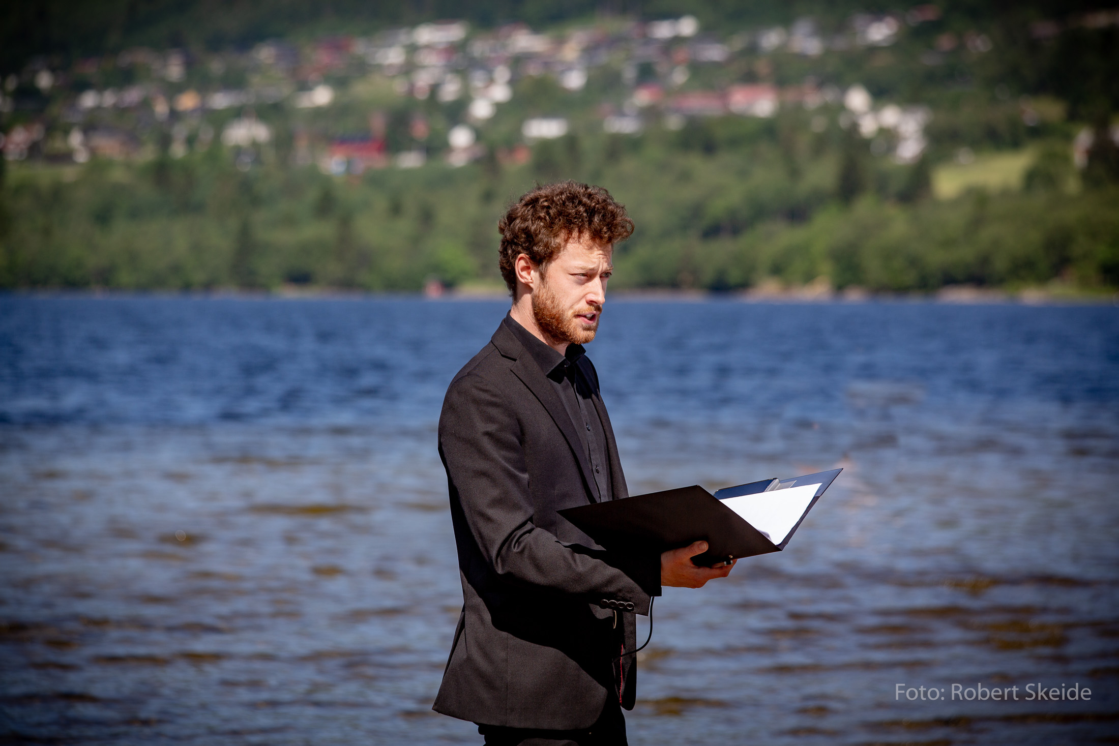 Kontratenor Sean Bell i Rotevatnet under tonehimmel 2023. (Foto: Robert Skeide)