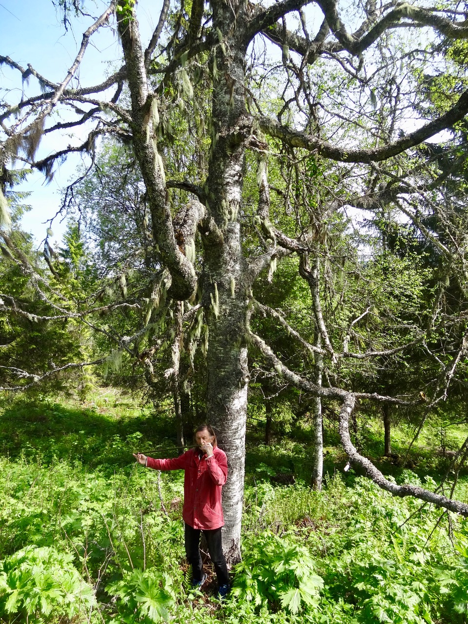 Hans Fredrik Jacobsen under et av trærne som bidrar til at han skaper den musikken han gjør og instrumentene han trenger. (Foto: Audun Strype)