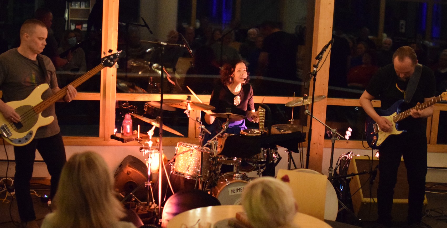 Med låtskriver, vokalist og trommis Kari Heimen i spissen leverte trioen Heimen en prikkfri plateslippkonsert i frontfigurens hjemby Alta, skriver anmelder Bernhard Hienerwadel.(Foto: Bernhard Hienerwadel)