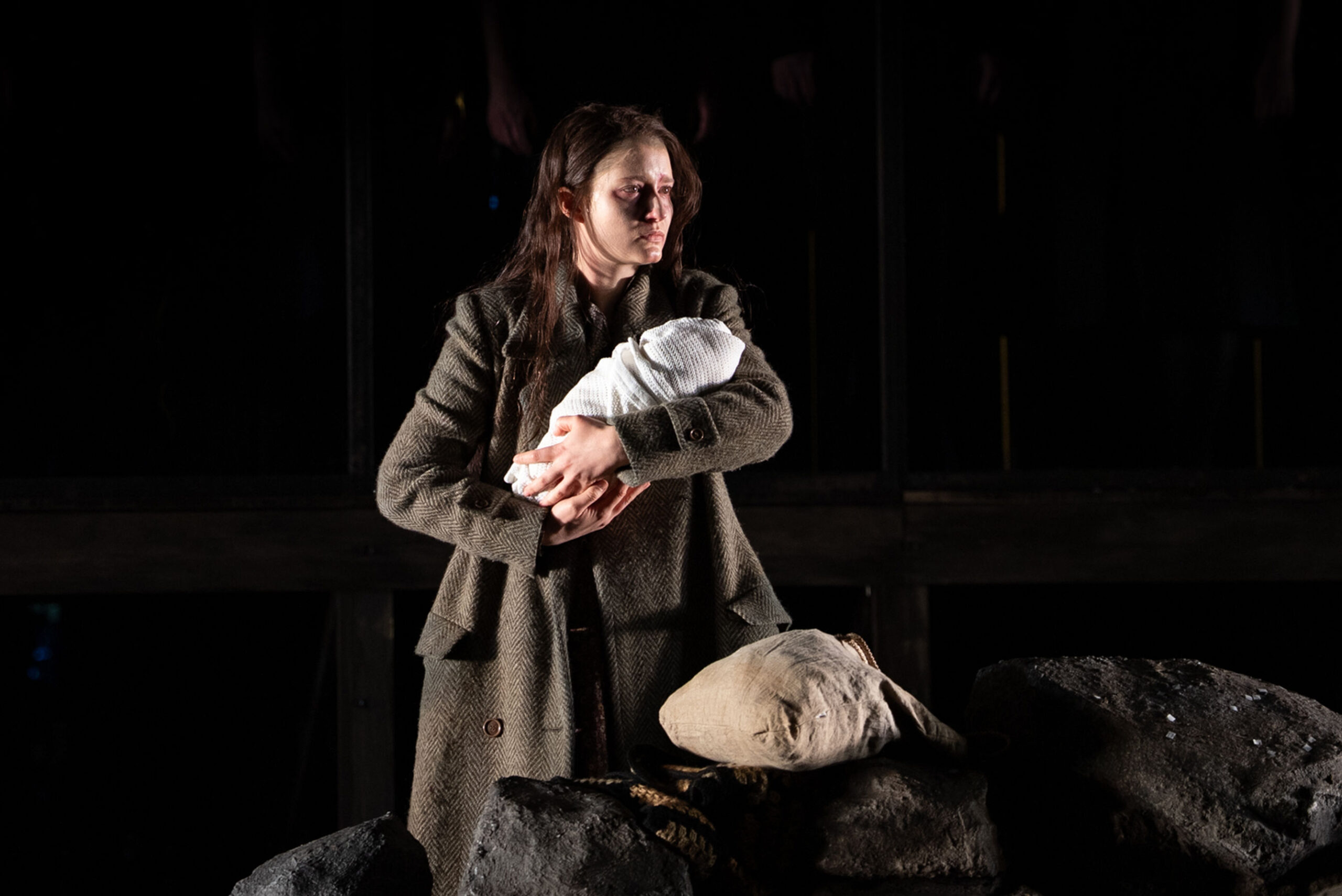 Alida med sin nyfødte sønn, Sigvald. Alida spilles av Louise McClelland Jacobsen. (Foto: Monika Kolstad / Bergen Nasjonale Opera)