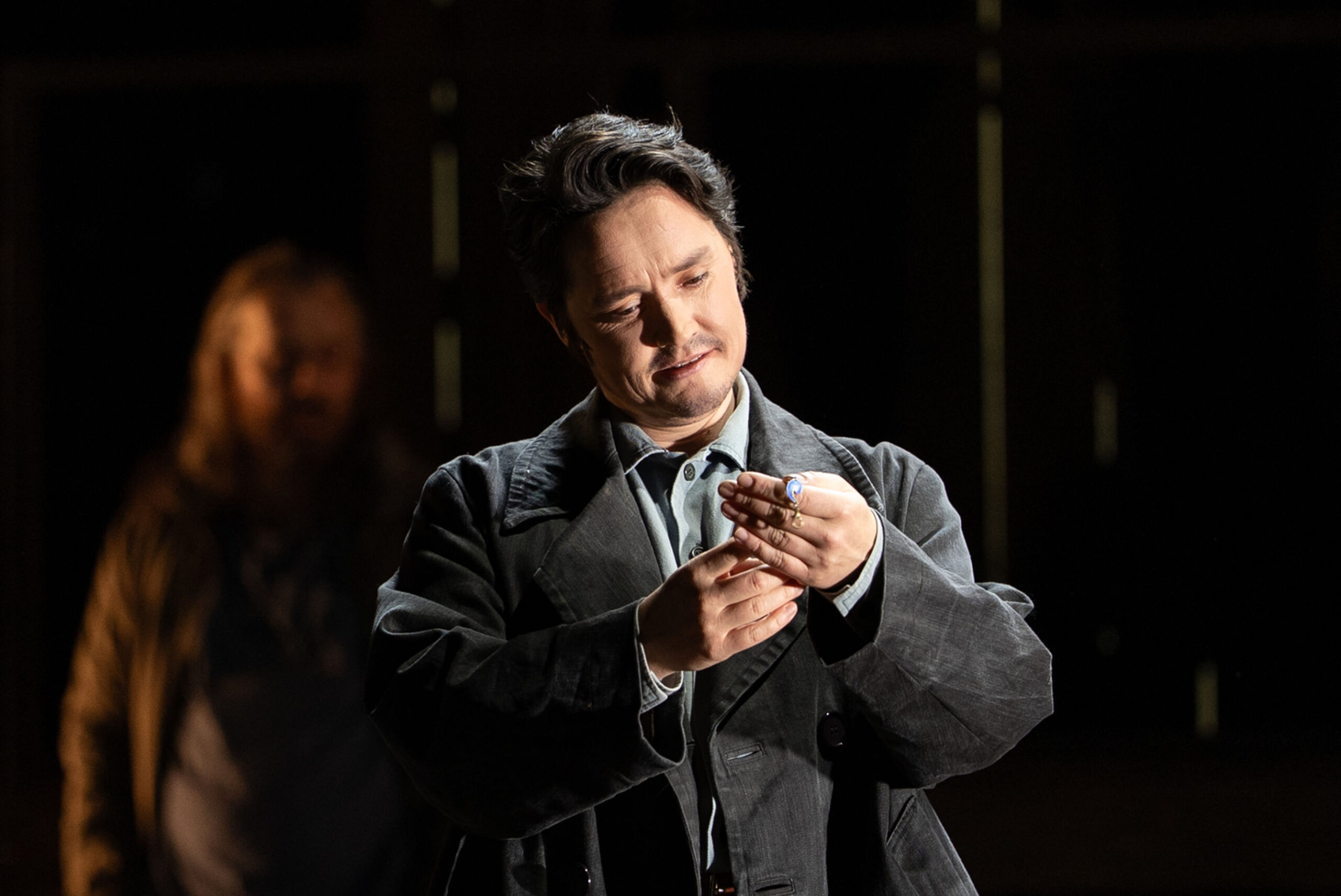 Frank Kjosås spiller smykkehandleren Åsleik i operaen Asle og Alida. Bildet er fra oppsetningen i Bergen i vår. (Foto: Monika Kolstad / Bergen Nasjonale Opera)