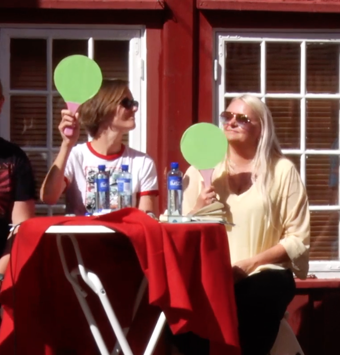 RØDGRØNNE KULTURPOLITIKERE: Anette Trettebergstuen (t.v.) og Åslaug Sem-Jacobsen blant kulturpolitikere på Arendalsuka – her er begge i lykkelig opposisjon. (Foto: Faksimile/skjermdump fra Arendalsuka)