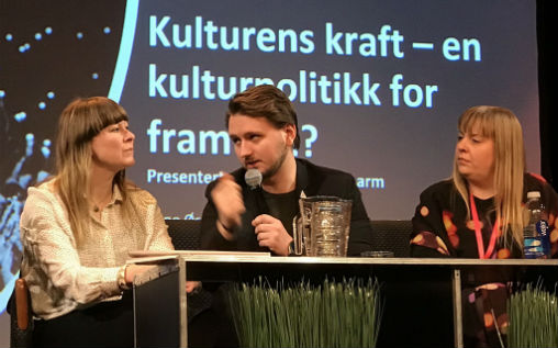 Paneldebatt kulturmeldinga: Gry Bråtømyr, Freddy Øvstegård og Tone Østerdal (Foto: Guro Kleveland / Ballade)