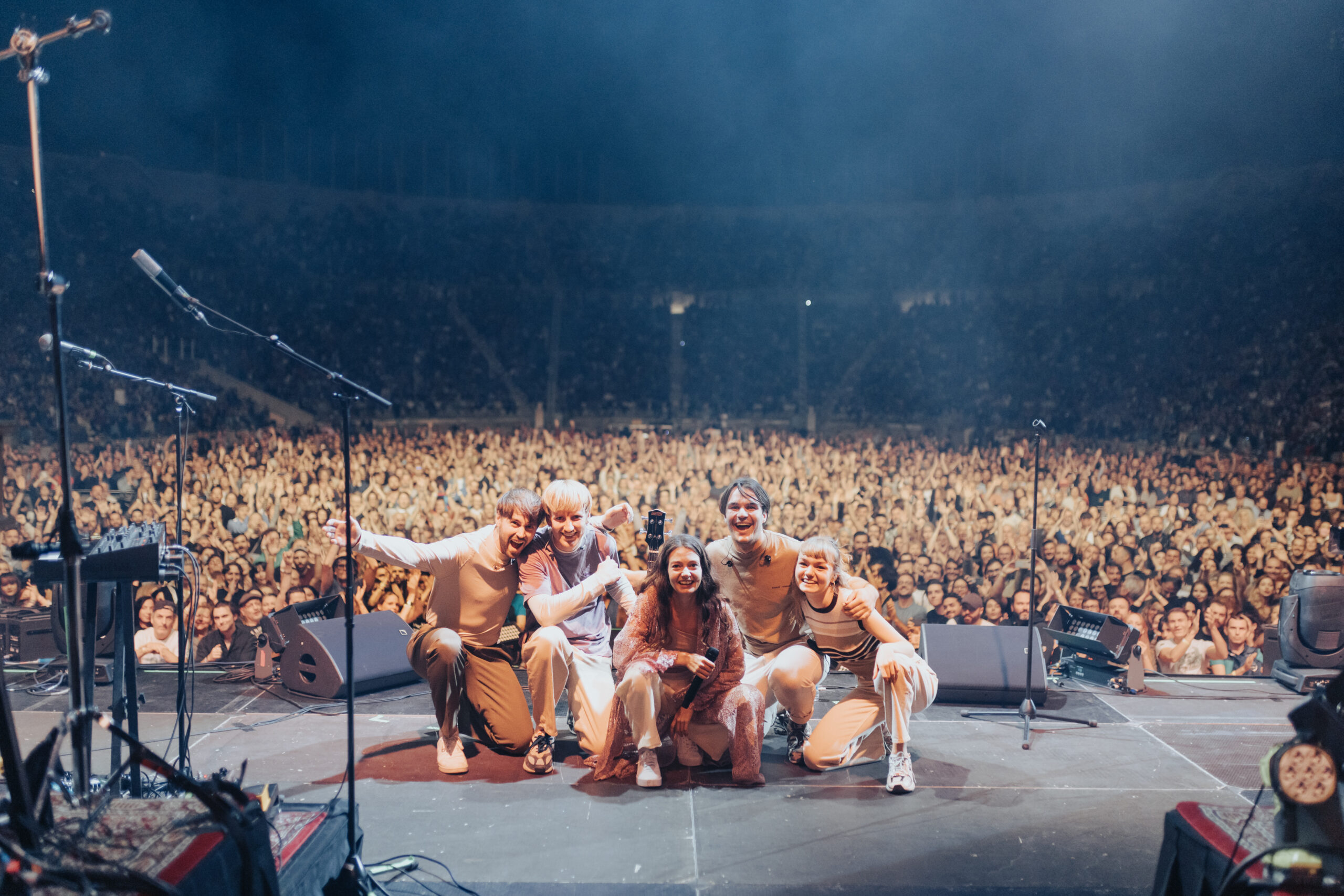 Lysende publikum, Kallimarmaro: Amanda Tenfjord har gresk mellomnavn og bruker sin doble identitet som artist. Her varmer hun opp for Madrugada på den gamle olympiske stadion / Kalimarmara, i Athen 24. september.(Foto: Kristoffer Hylland)
