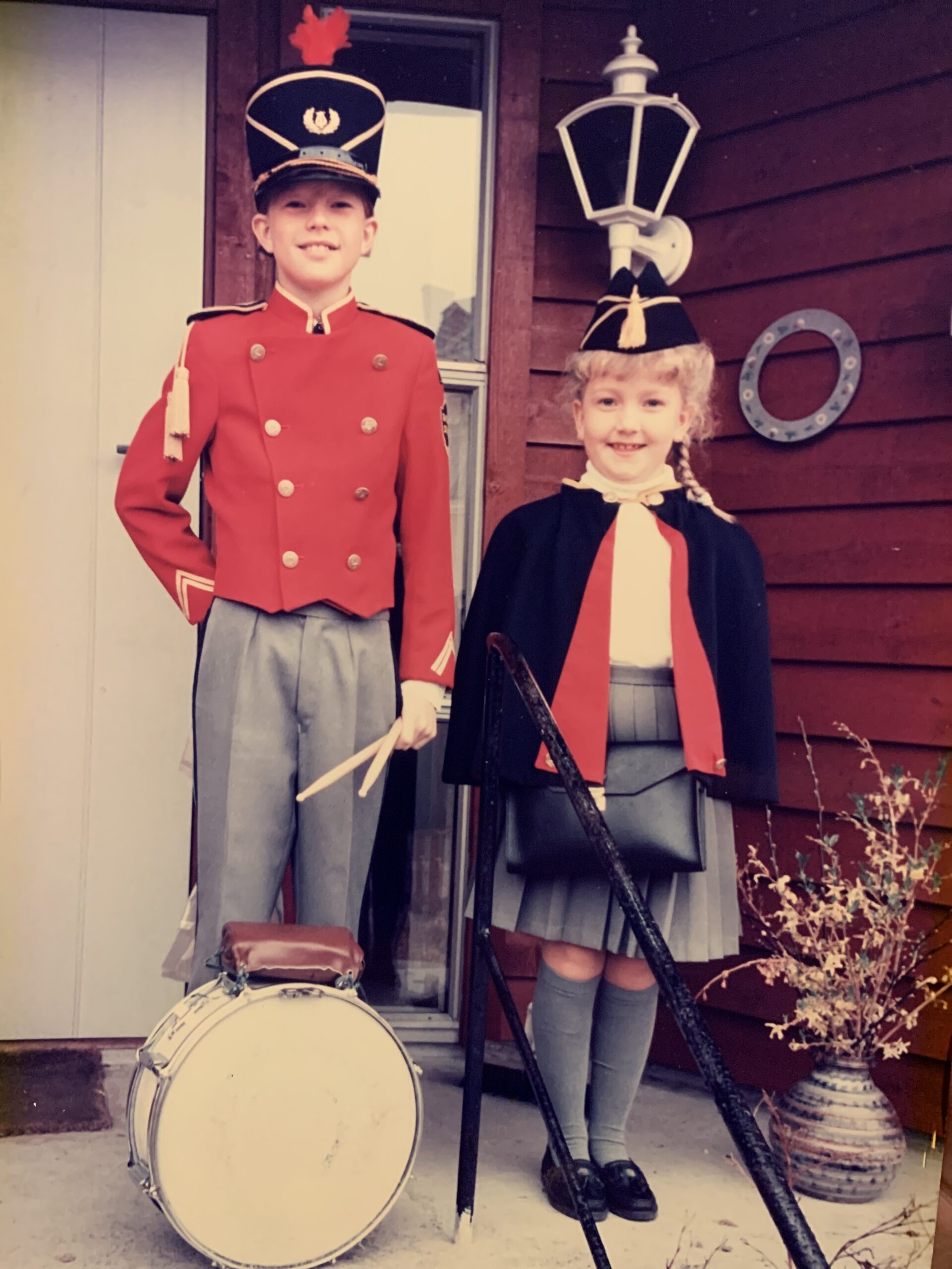 Lillesøster Taran og Gard Nilssen på vei til 17. mai-tog tidlig på 90-tallet. (Foto: Privat)
