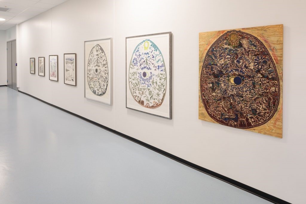 Hans Ragnar Mathisen / Elle-Hánsa får Kulturrådets ærespris for 2024. Her fra egen utstilling i Mo i Rana. (Foto: Ukjent/NTB)