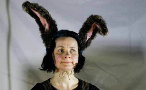 Prøvekaninen Pip med et øre med knekk (Foto: Johanne Karlsrud/Festspillene i Bergen)